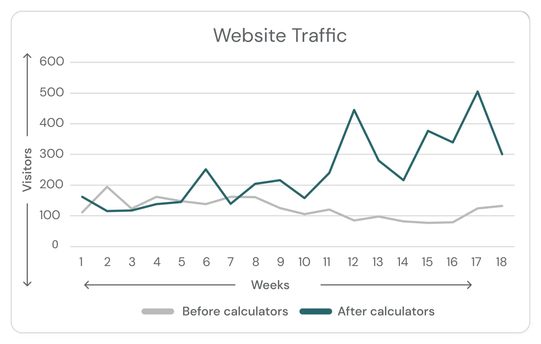 Het publiceren van nieuwe artikelen met de calculator functionaliteit ingeschakeld zorgde voor een toename van 94% in het totale websiteverkeer binnen de eerste zes maanden na deze implementatie.